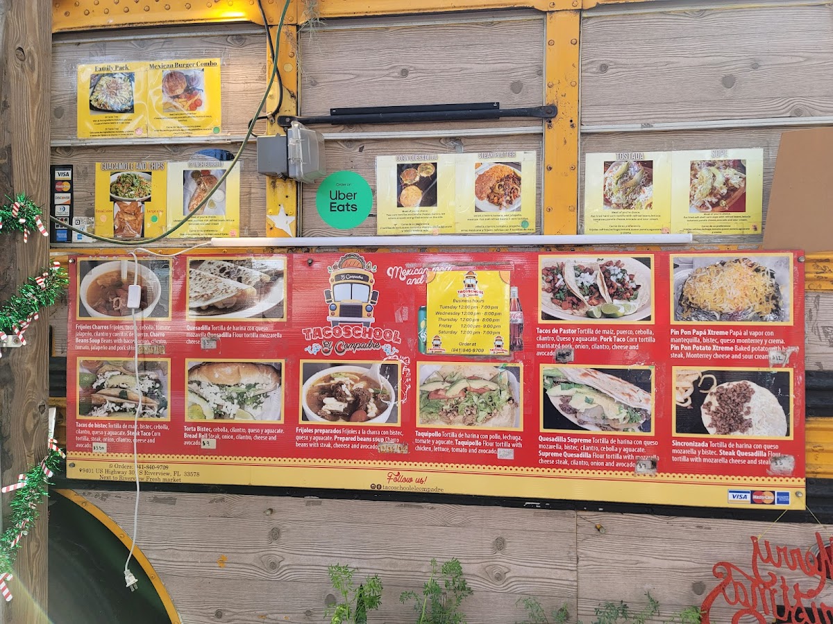 Welcome to TacoSchool El Compadre, a hidden gem located at 9401 US-301 S, Riverview, FL. This vibrant taco bus serves up authentic Mexican flavors that transport you straight to the streets of Mexico. Their all-day menu features a tantalizing array of tacos, quesadillas, and more, each crafted with fresh ingredients.